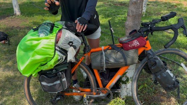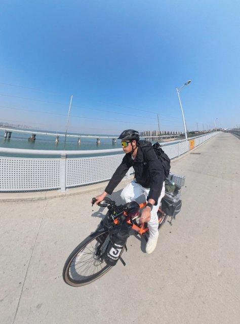 3月22日,陈超在宿舍一直待到中午,就是为了等同事中午下班进行一个简单的告别。随后,陈超蹬着他那辆橙色公路车冲出机场生活区,后座绑着帐篷、睡袋、修车工具和压缩饼干等物资,总重30公斤。导航显示,从厦门到楚雄南华县推荐路线公里,而他却特意绕道去到了沿海公路:“想看看大海到底有多蓝,并且选择路过广州、深圳,自己之前还没到过一线大城市,想去看看。”