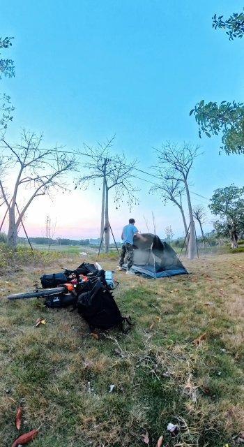 每到傍晚,陈超的“安家仪式”总是充满变数。在广西某县城公园里,陈超刚把帐篷搭好,却发现晚饭后广场舞音箱的位置就在几米远的地方,一直响到晚上10点,陈超睡下没几个小时,早晨六点,同样位置的大音箱再次响起。当然,每经过几个露营之夜,陈超也会在沿途小旅店住上一晚,让自己充满能量,再度出发。