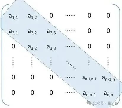这种矩阵像条带子,中间对角线有数字,带宽是指矩阵中非零元素分布的范围,也就是从主对角线向两侧延伸的宽度。