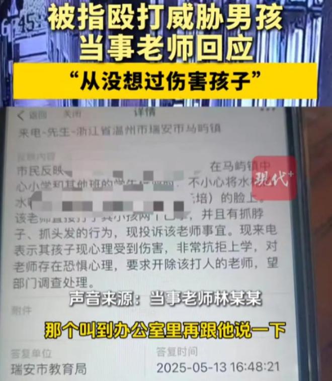信息来源:现代快报-被指殴打威胁男孩当事老师回应-2025年5月17日抖音-中华覃氏-2025年5月28日